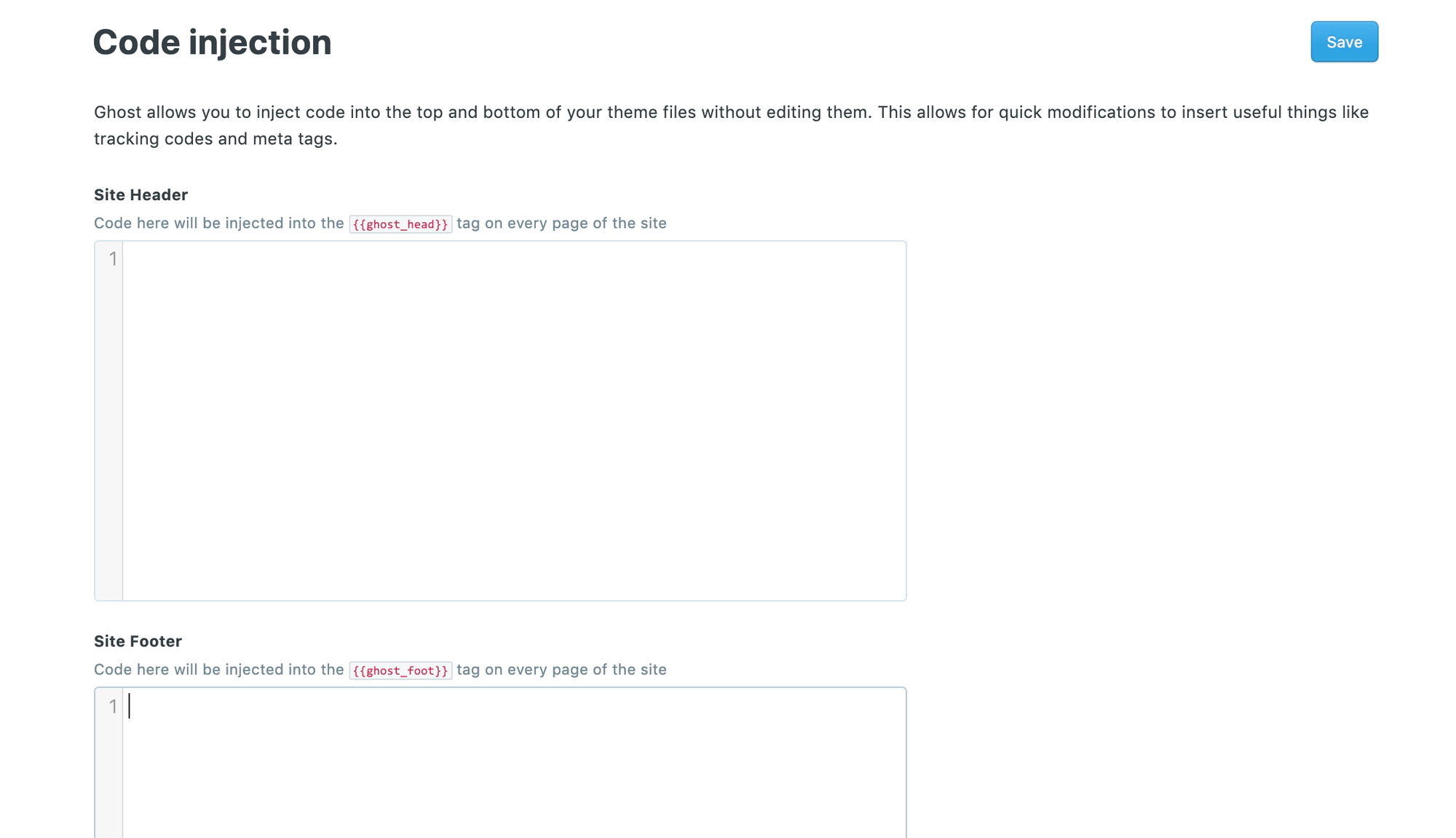 Next, copy the provided code in Step 2 and add it to Footer section of Ghost’s Code Injection settings area.