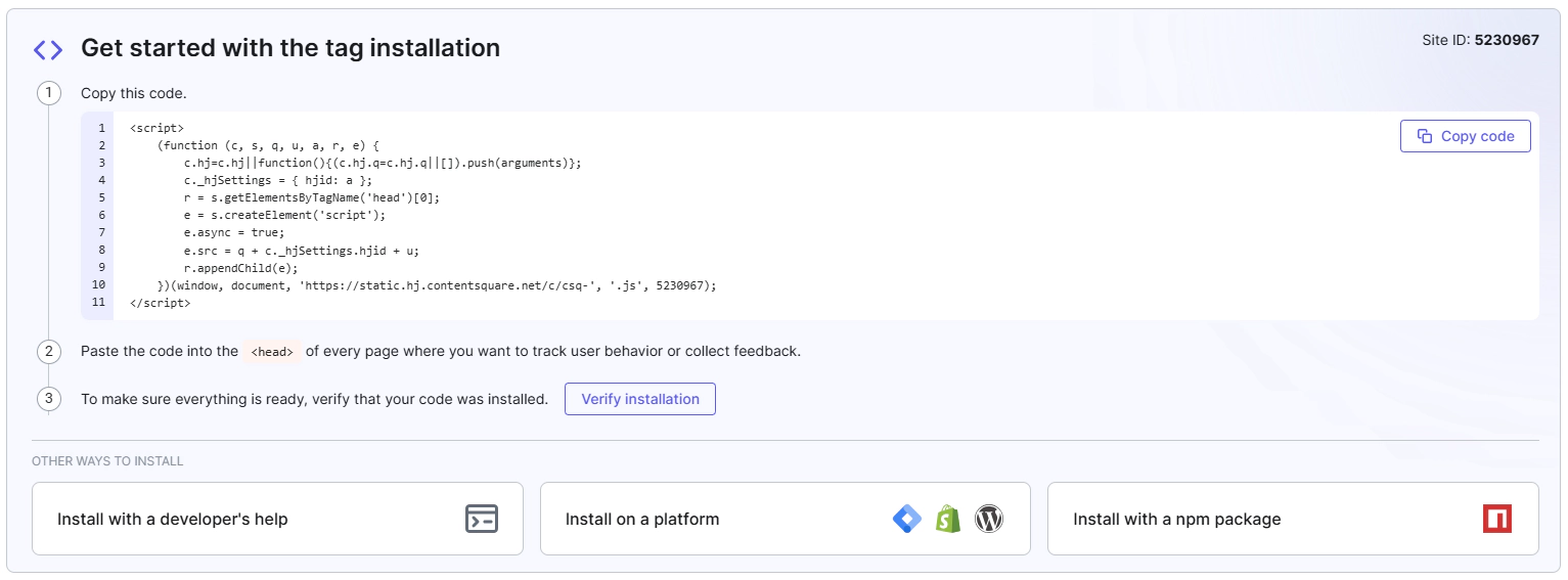 Your site is now fully integrated with Hotjar – you can use the verify installation button to check everything is working as expected. From here, you might want to check out the Hotjar resources to find out how to make the most of the tool.